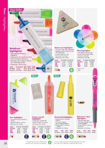 • Transparent caps to match ink highlighter • Made from 30% recycled