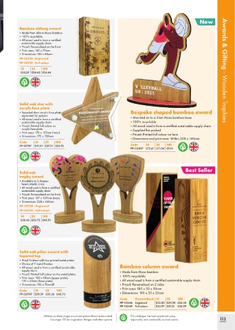 • All wood used is from a certified sustainable Bamboo column award