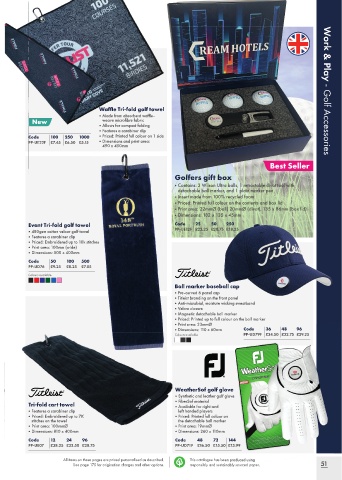 Waffle Tri-fold golf towel Work & Play - Golf Accessories