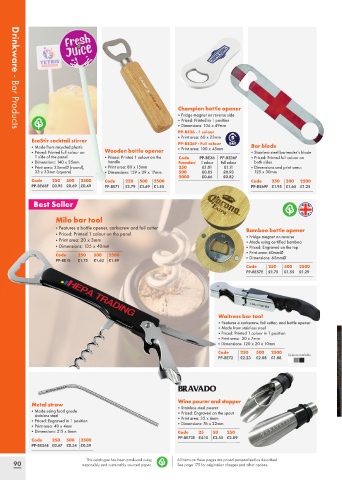 • Priced: Printed full colour on Wooden bottle opener • Stainless steel bartender’s blade