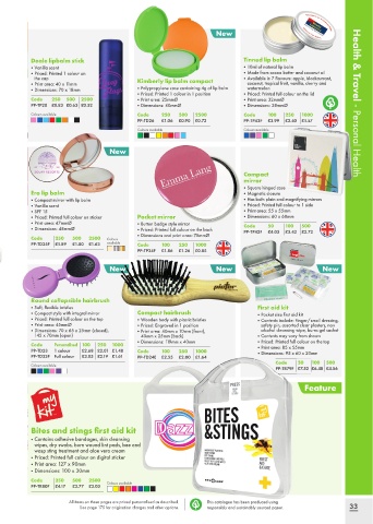 • Compact style with integral mirror Compact hairbrush • Pocket size first aid kit