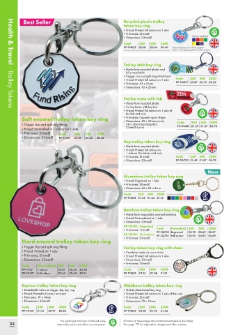 • Trigger clip and split ring fitting Trolley token key ring with chain