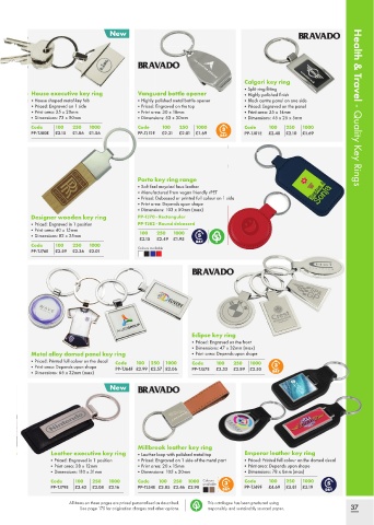 • • Priced: Engr av ed on 1 side • Priced: Engraved on the top • Priced: Engraved on the panel Health & Travel - Quality Key Rings